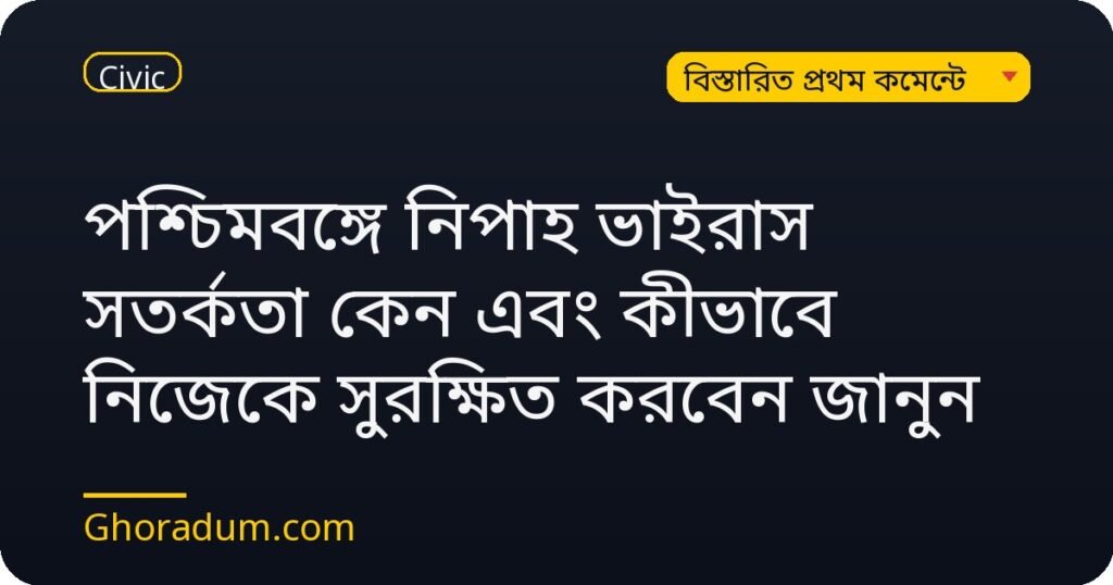 পশ্চিমবঙ্গে নিপাহ ভাইরাসের সতর্কতা ও নিজেকে সুরক্ষিত রাখার উপায় নিয়ে বিস্তারিত তথ্য। কলকাতা ও আশেপাশের এলাকায় সচেতনতা জরুরি।