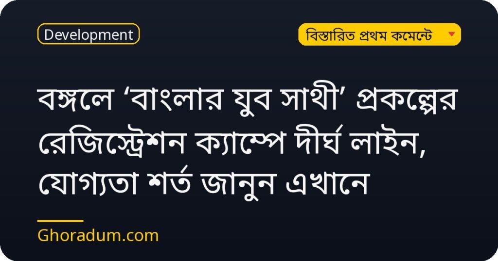 বাংলার যুব সাথী প্রকল্পের রেজিস্ট্রেশন ক্যাম্পে দীর্ঘ লাইন দেখা গেছে। যোগ্যতা ও শর্তাবলী সম্পর্কে বিস্তারিত জানুন এখানে।