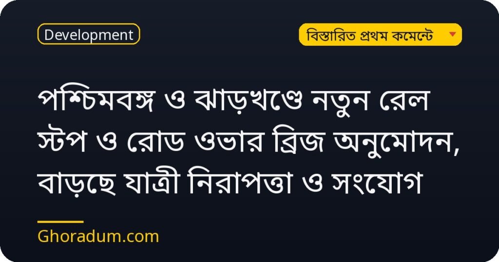 পশ্চিমবঙ্গ ও ঝাড়খণ্ডে নতুন রেল স্টপ ও রোড ওভার ব্রিজ অনুমোদিত হয়েছে, যা যাত্রী নিরাপত্তা ও সংযোগ বাড়াতে সহায়ক হবে।