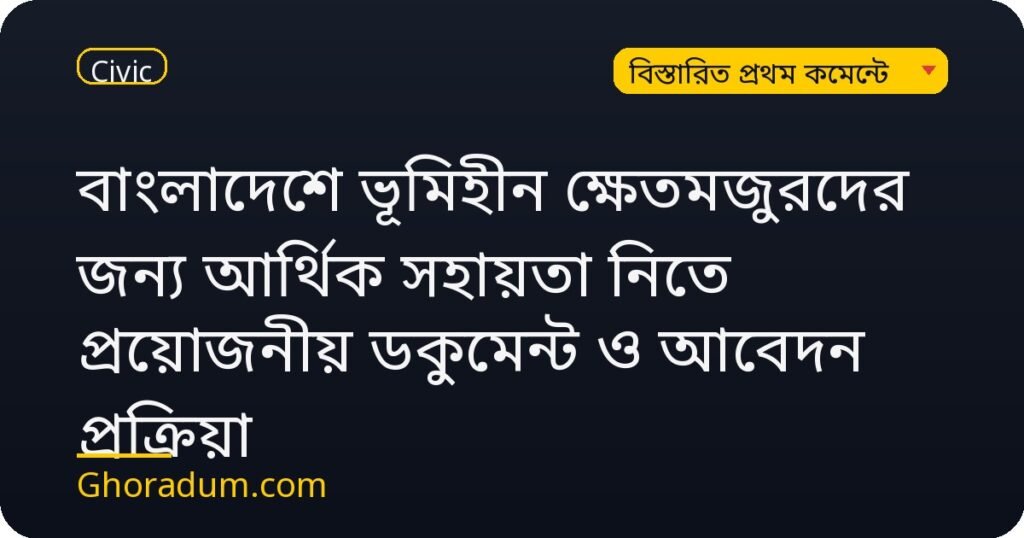 বাংলাদেশে ভূমিহীন ক্ষেতমজুরদের জন্য আর্থিক সহায়তা নেওয়ার প্রয়োজনীয় ডকুমেন্ট ও আবেদন প্রক্রিয়া সম্পর্কে বিস্তারিত তথ্য।