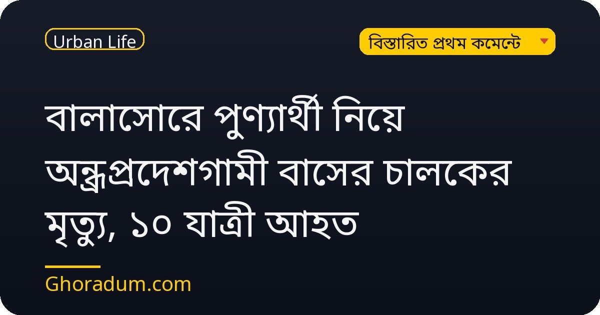 বালাসোরে পুণ্যার্থী নিয়ে অন্ধ্রপ্রদেশগামী বাসের চালকের মৃত্যু, ১০ যাত্রী আহত