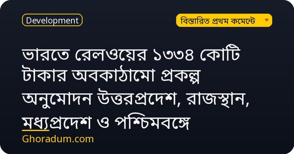 ভারতে রেলওয়ের ১৩৩৪ কোটি টাকার অবকাঠামো প্রকল্প অনুমোদন উত্তরপ্রদেশ, রাজস্থান, মধ্যপ্রদেশ ও পশ্চিমবঙ্গে