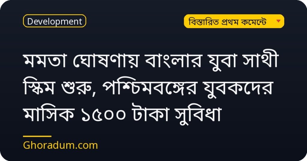 পশ্চিমবঙ্গের যুবকদের জন্য মমতা বন্দ্যোপাধ্যায়ের ঘোষণায় সাথী স্কিম শুরু হয়েছে, যা মাসিক ১৫০০ টাকা সুবিধা দেবে।