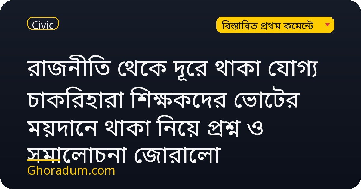 রাজনীতি থেকে দূরে থাকা যোগ্য চাকরিহারা শিক্ষকদের ভোটের ময়দানে থাকা নিয়ে প্রশ্ন ও সমালোচনা জোরালো