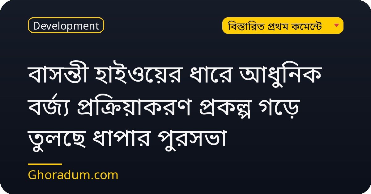 বাসন্তী হাইওয়ের ধারে আধুনিক বর্জ্য প্রক্রিয়াকরণ প্রকল্প গড়ে তুলছে ধাপার পুরসভা