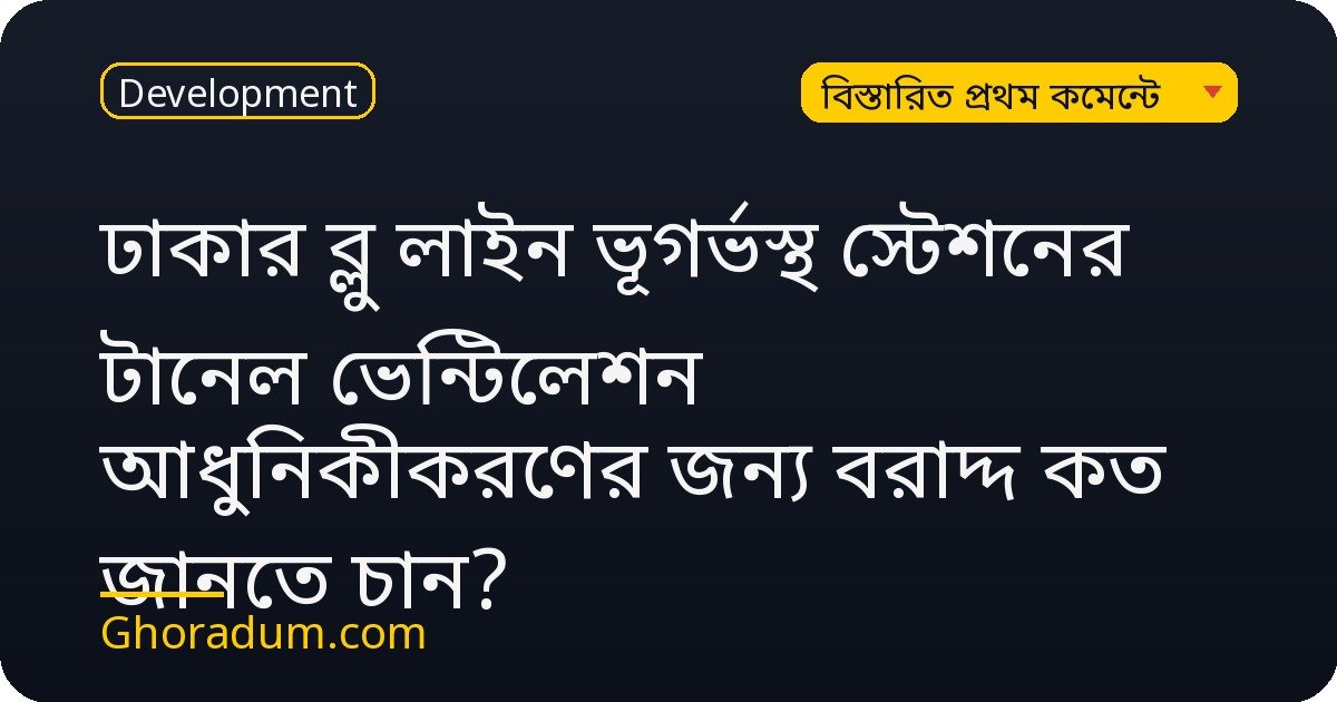ঢাকার ব্লু লাইন ভূগর্ভস্থ স্টেশনের টানেল ভেন্টিলেশন আধুনিকীকরণের জন্য বরাদ্দ কত জানতে চান?
