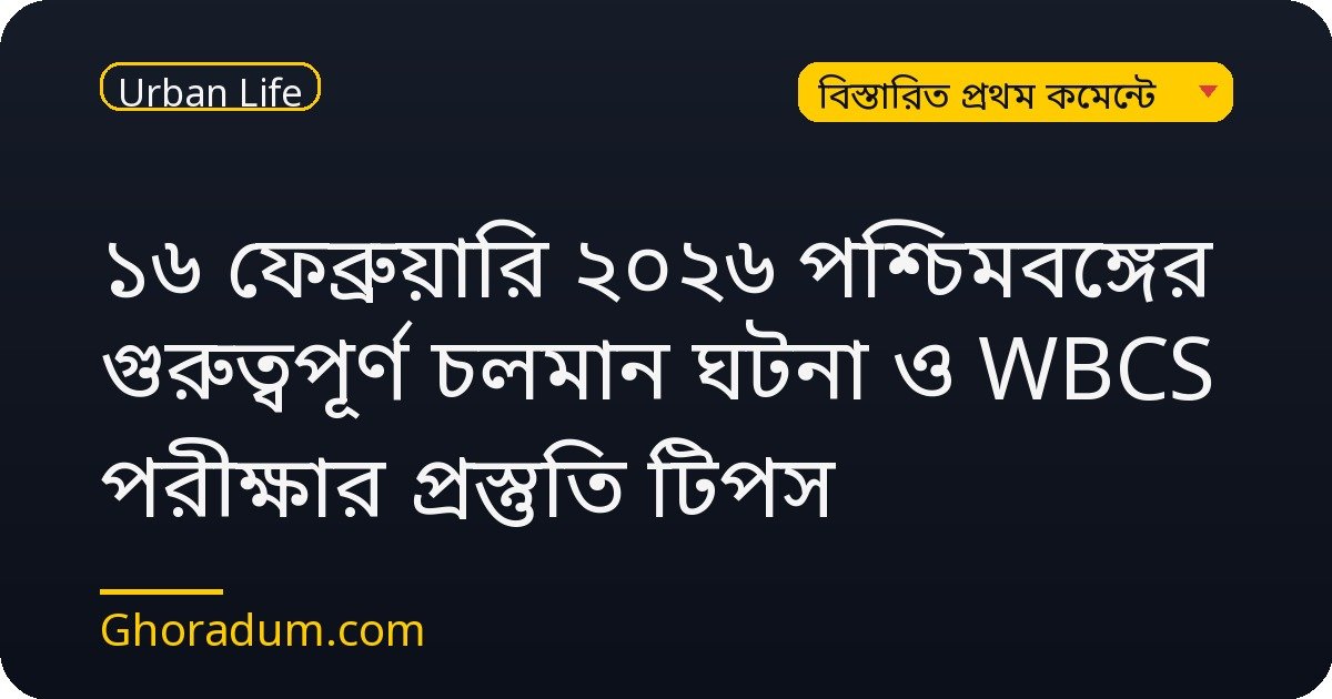 ১৬ ফেব্রুয়ারি ২০২৬ পশ্চিমবঙ্গের গুরুত্বপূর্ণ চলমান ঘটনা ও WBCS পরীক্ষার প্রস্তুতি টিপস