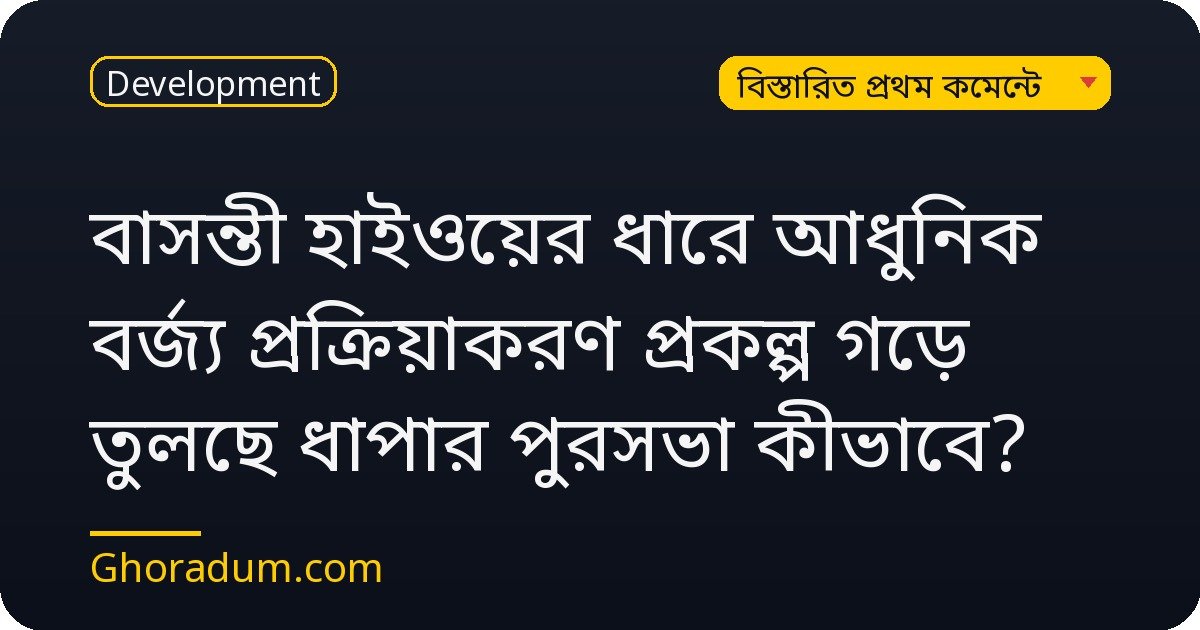 বাসন্তী হাইওয়ের ধারে আধুনিক বর্জ্য প্রক্রিয়াকরণ প্রকল্প গড়ে তুলছে ধাপার পুরসভা কীভাবে?