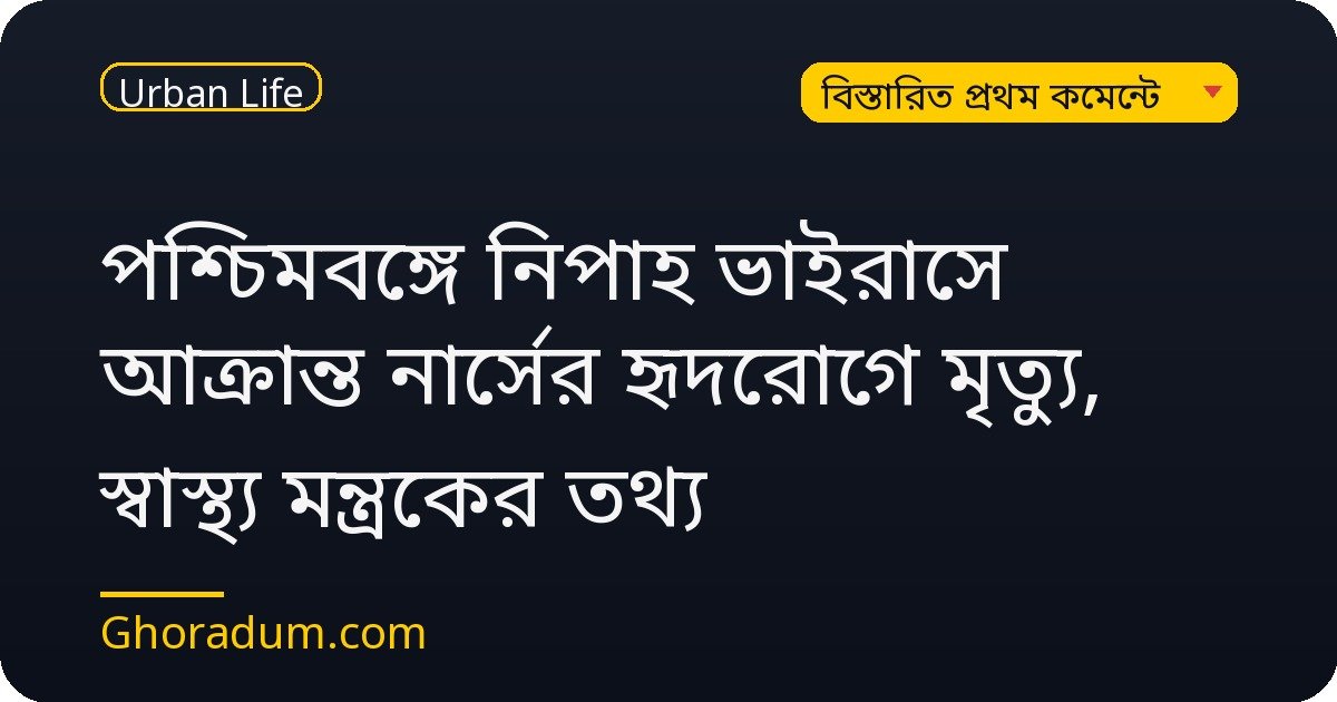 পশ্চিমবঙ্গে নিপাহ ভাইরাসে আক্রান্ত নার্সের হৃদরোগে মৃত্যু, স্বাস্থ্য মন্ত্রকের তথ্য