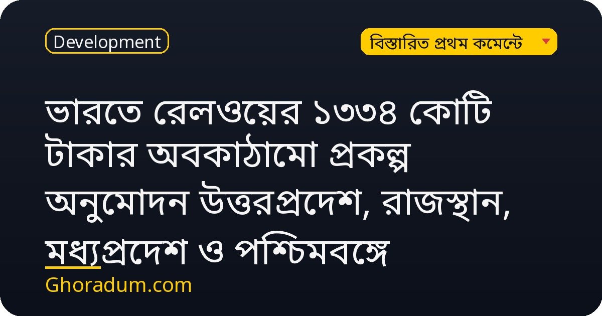 ভারতের রেলওয়ে দেশের বৃহত্তম গণপরিবহন ব্যবস্থা এবং দেশের অর্থনীতিতে এর অবদান অপরিসীম। অনুমোদিত ১৩৩৪ কোটি টাকার প্রকল্পগুলোর মধ্যে রয়েছে নতুন ট্র্যাক নির্মাণ, বিদ্যুতায়ন সম্প্রসারণ, এবং আধুনিক সিগন্যালিং সিস্টেম স্থাপন। এই উন্নয়ন কর্মসূচি শুধু যাত্রীসুবিধা বাড়াবে না, বরং মালবাহী পরিবহণের দক্ষতাও বৃদ্ধি করবে, যা শিল্প ও বাণিজ্যের জন্য ইতিবাচক প্রভাব ফেলবে।