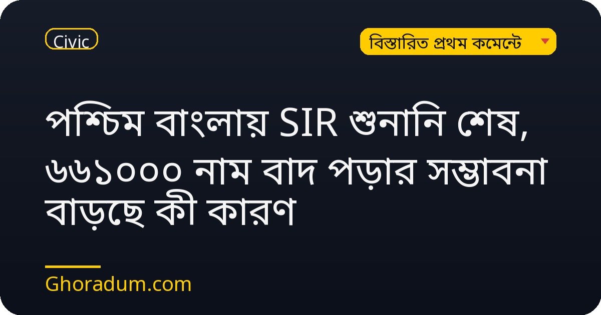 পশ্চিম বাংলায় SIR শুনানি শেষ, ৬৬১০০০ নাম বাদ পড়ার সম্ভাবনা বাড়ছে কী কারণ