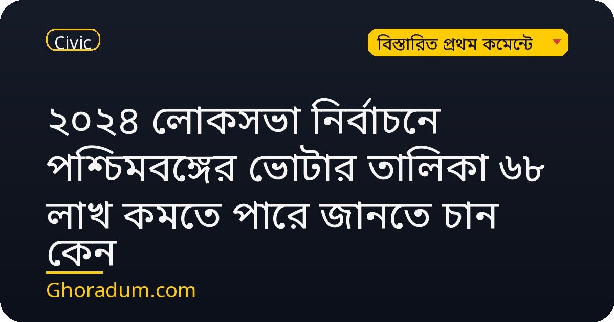 ২০২৪ লোকসভা নির্বাচনে পশ্চিমবঙ্গের ভোটার তালিকা ৬৮ লাখ কমতে পারে জানতে চান কেন