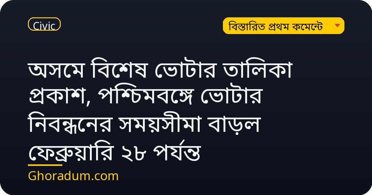 অসমে বিশেষ ভোটার তালিকা প্রকাশ, পশ্চিমবঙ্গে ভোটার নিবন্ধনের সময়সীমা বাড়ল ফেব্রুয়ারি ২৮ পর্যন্ত