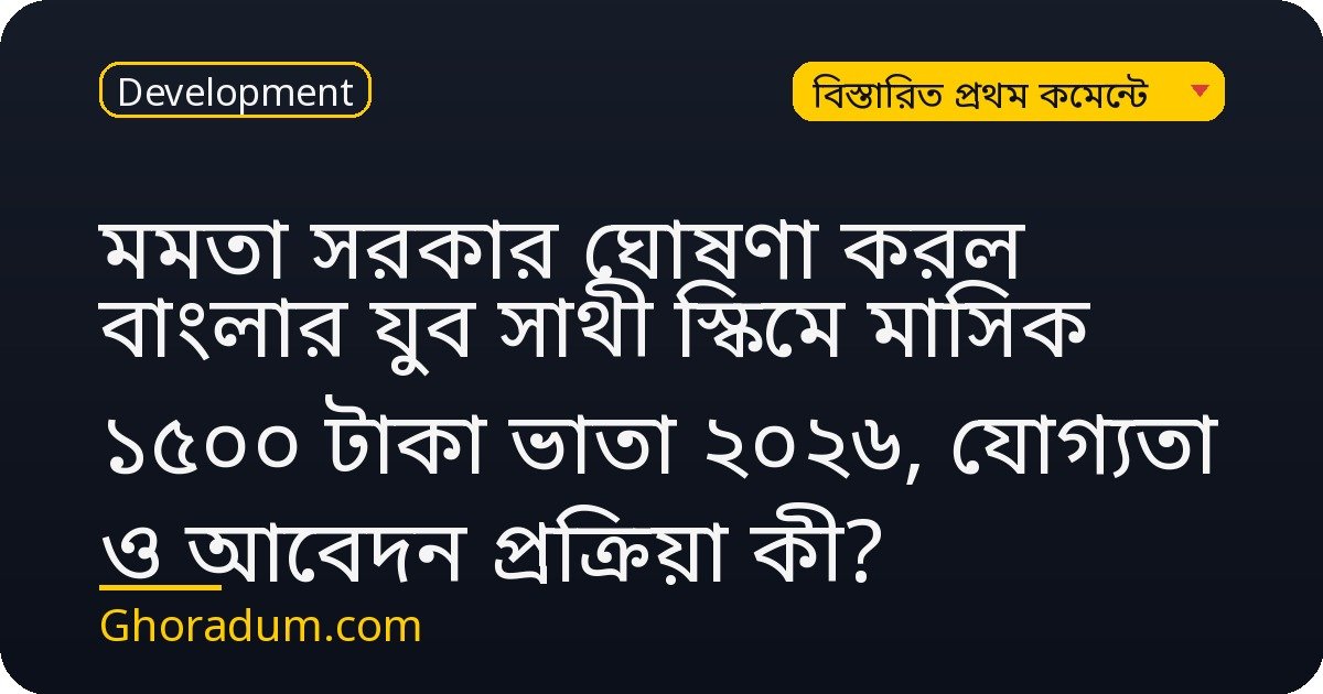 মমতা সরকার ঘোষণা করল বাংলার যুব সাথী স্কিমে মাসিক ১৫০০ টাকা ভাতা ২০২৬, যোগ্যতা ও আবেদন প্রক্রিয়া কী?