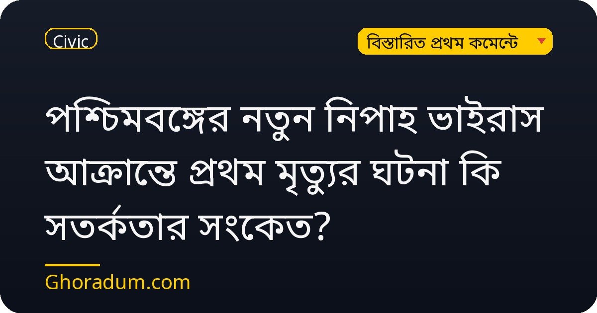 পশ্চিমবঙ্গের নতুন নিপাহ ভাইরাস আক্রান্তে প্রথম মৃত্যুর ঘটনা কি সতর্কতার সংকেত?