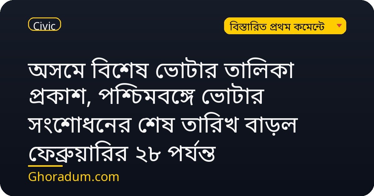 অসমে বিশেষ ভোটার তালিকা প্রকাশ, পশ্চিমবঙ্গে ভোটার সংশোধনের শেষ তারিখ বাড়ল ফেব্রুয়ারির ২৮ পর্যন্ত
